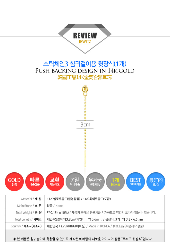 | 주요사양 | 14k gold 뒷장식(클러치) 1개 |