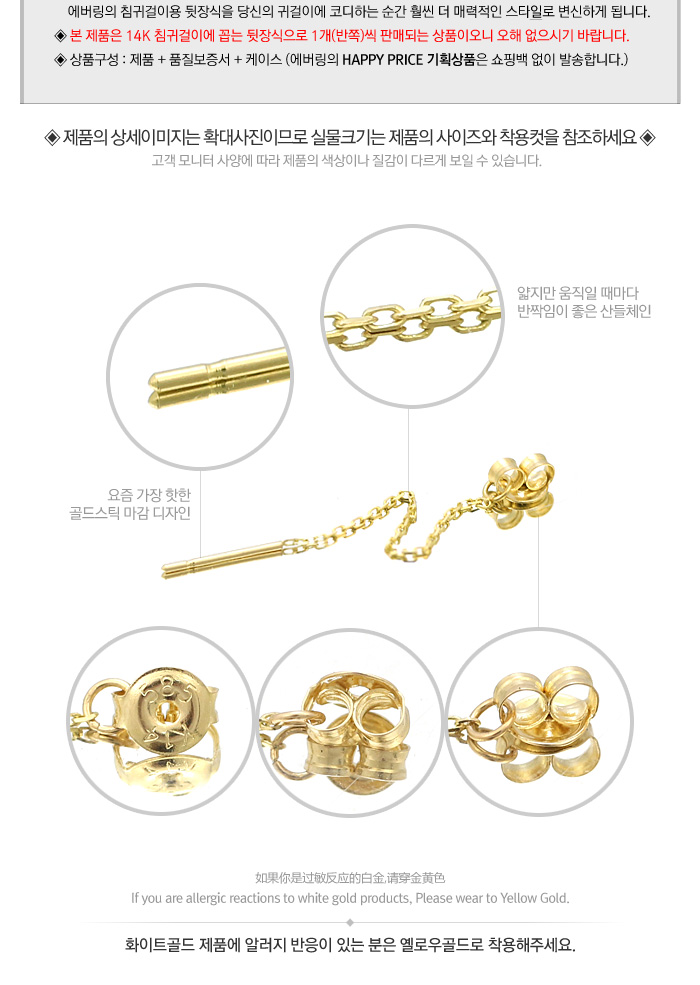| 주의사항 | 백화점에서 판매하는 white gold 제품에 알러지 반응이 있는 고객은 yellow gold로 착용해주세요 |