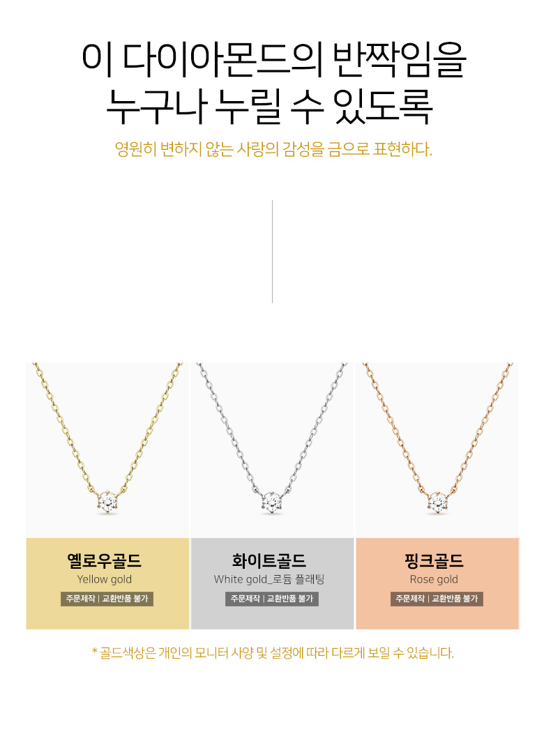 | 주의사항 | 백화점에서 판매하는 화이트골드 제품에 알러지 반응이 있는 분은 옐로우골드로 주문해주세요. |
