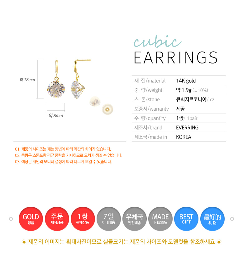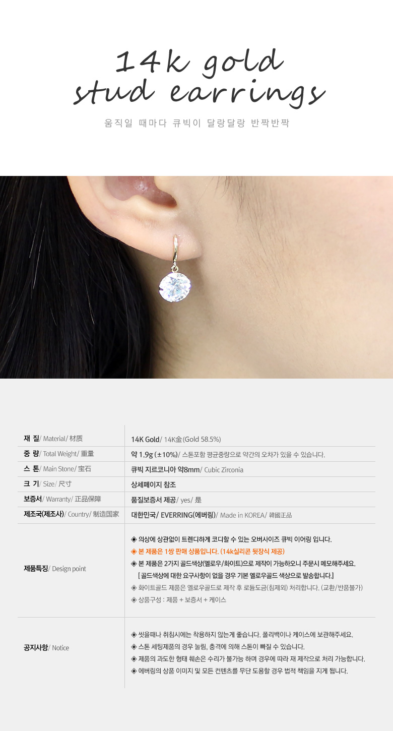 | 주의사항 | 백화점에서 판매하는 white gold 제품에 알러지 반응이 있는 고객은 yellow gold로 착용해주세요. |