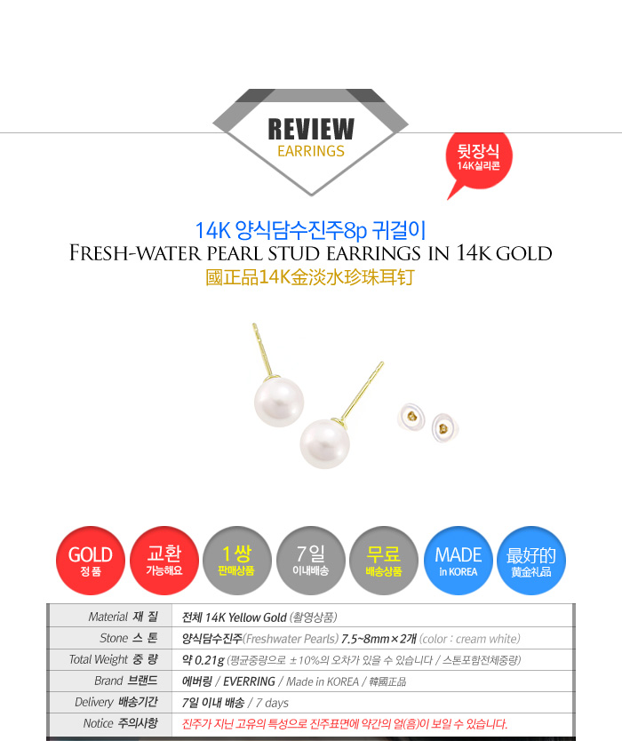 | 주의사항 | 백화점에서 판매하는 white gold 제품에 알러지 반응이 있는 고객은 yellow gold로 착용해주세요 |