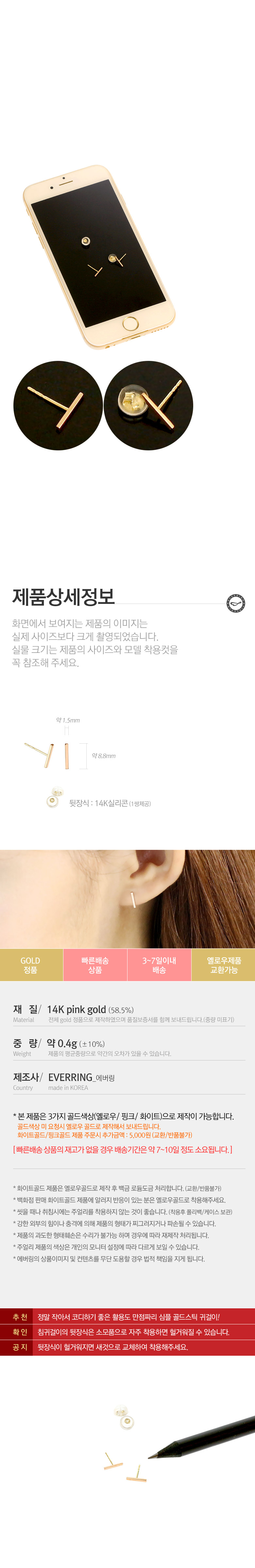 | 주요사양 | 14k gold stud earrings |