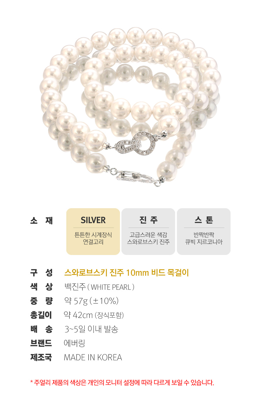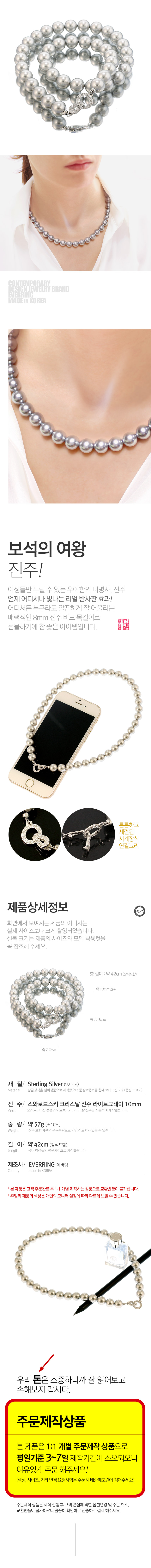 | 주의사항 | 진주는 습기나 열에 약하니 착용시 주의해주시기 바랍니다. |