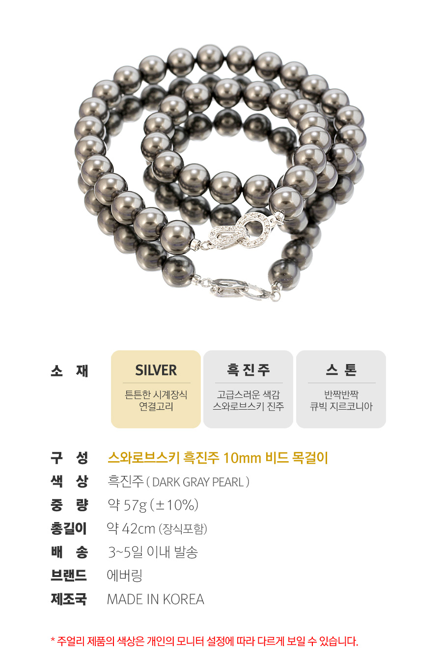 | 주의사항 | 진주는 습기나 열에 약하니 착용시 주의해주시기 바랍니다(주문제작기간 4~5일소요) |