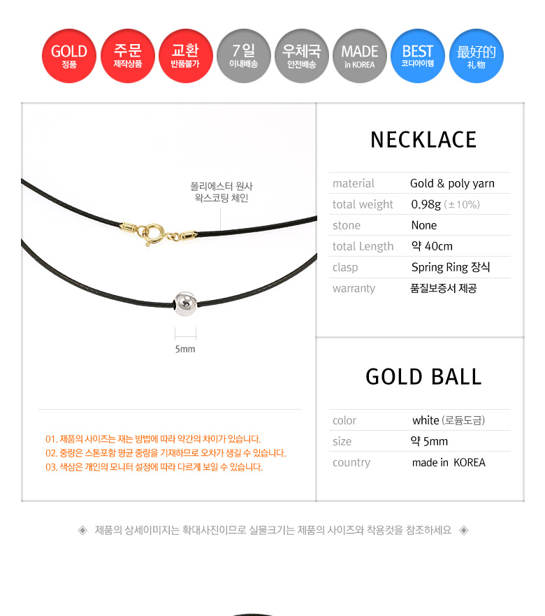 주요사양 5mm gold ball