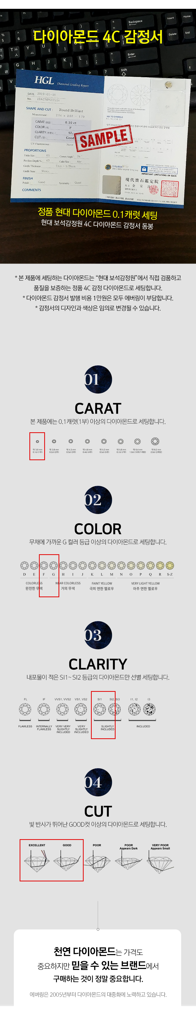 | 주의사항 | 백화점에서 판매하는 White Gold 제품에 알러지 반응이 있는 고객은 Yellow Gold로 착용해주세요~(주문제작기간 4~5일소요) |