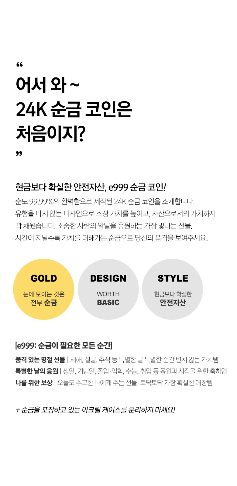 | 주요사양 | 순금 코인 |
